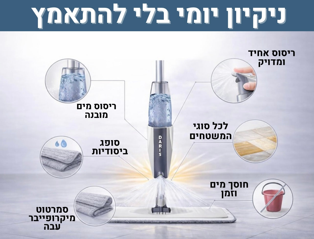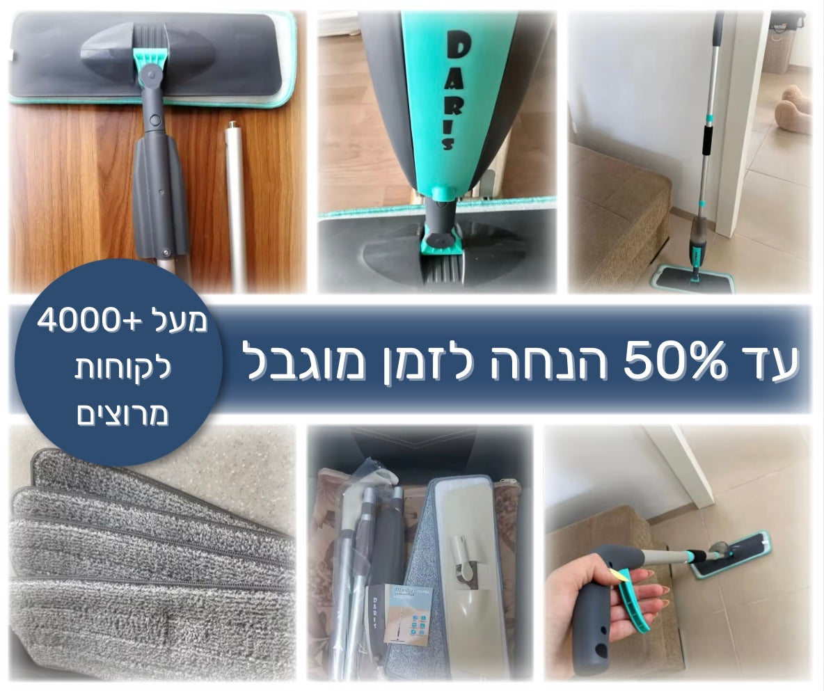 ניקוי מהיר, חסכוני במים, ומתאים לכל סוגי הרצפות – קרמיקה, פרקט, שיש ועוד.